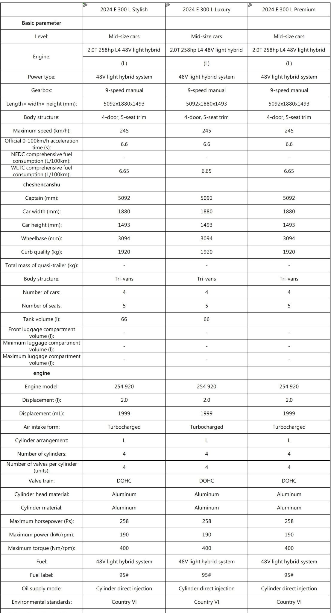Under the hood, the Mercedes-Benz E 300 L is powered by a 2.0L turbocharged inline-4 engine, delivering 190 kW (258 hp) and 400 Nm of torque. Paired with a 9G-TRONIC automatic transmission, the sedan ensures a smooth and responsive driving experience.