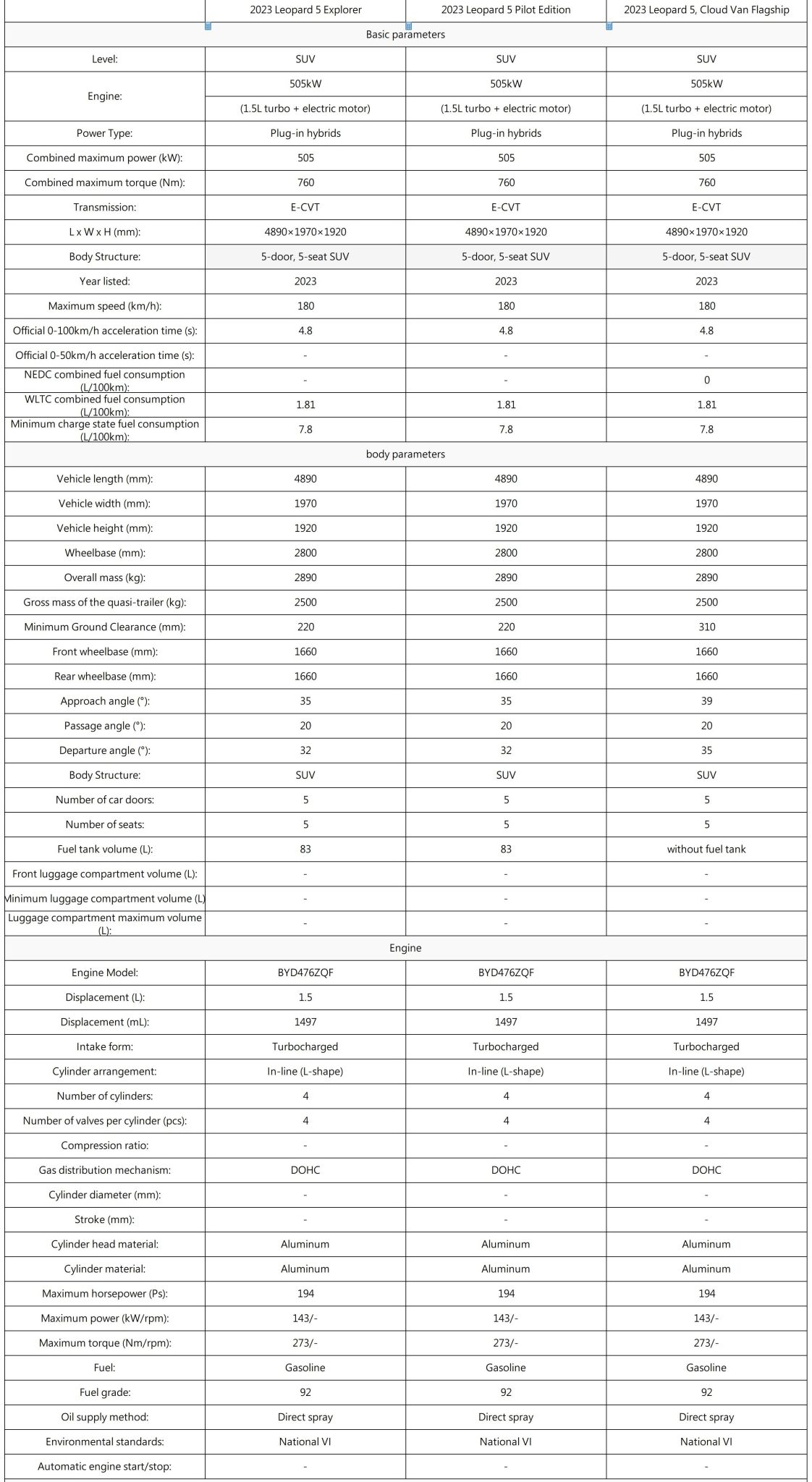 Unrivaled Power: 505kW total power output (1.5T engine + dual motors), 760N·m torque, and 0-100km/h acceleration in 4.8 seconds—rivaling 5.0T gasoline engines .