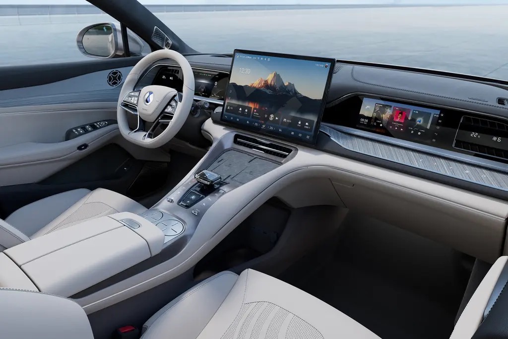 - A large central touchscreen integrated with intelligent infotainment and vehicle controls