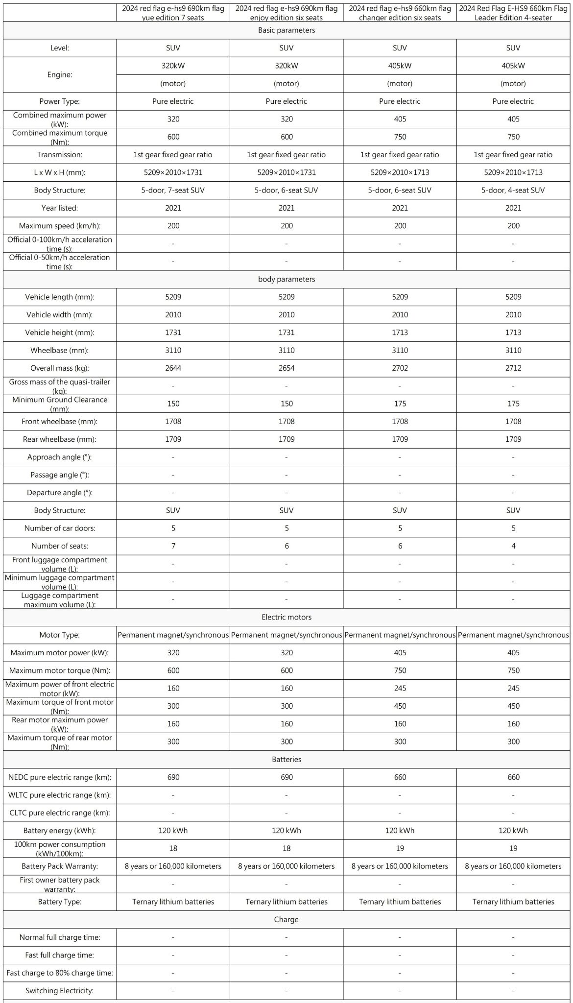The Hongqi E-HS9 is a luxury all-electric full-size SUV, blending prestigious design, cutting-edge technology, and powerful electric performance. As the flagship EV SUV from Hongqi (Red Flag), China’s premium automotive brand, the E-HS9 offers a spacious and elegant cabin, intelligent driving features, and an impressive driving range. Designed for executives, families, and luxury EV enthusiasts, the E-HS9 competes with top-tier electric SUVs worldwide.
