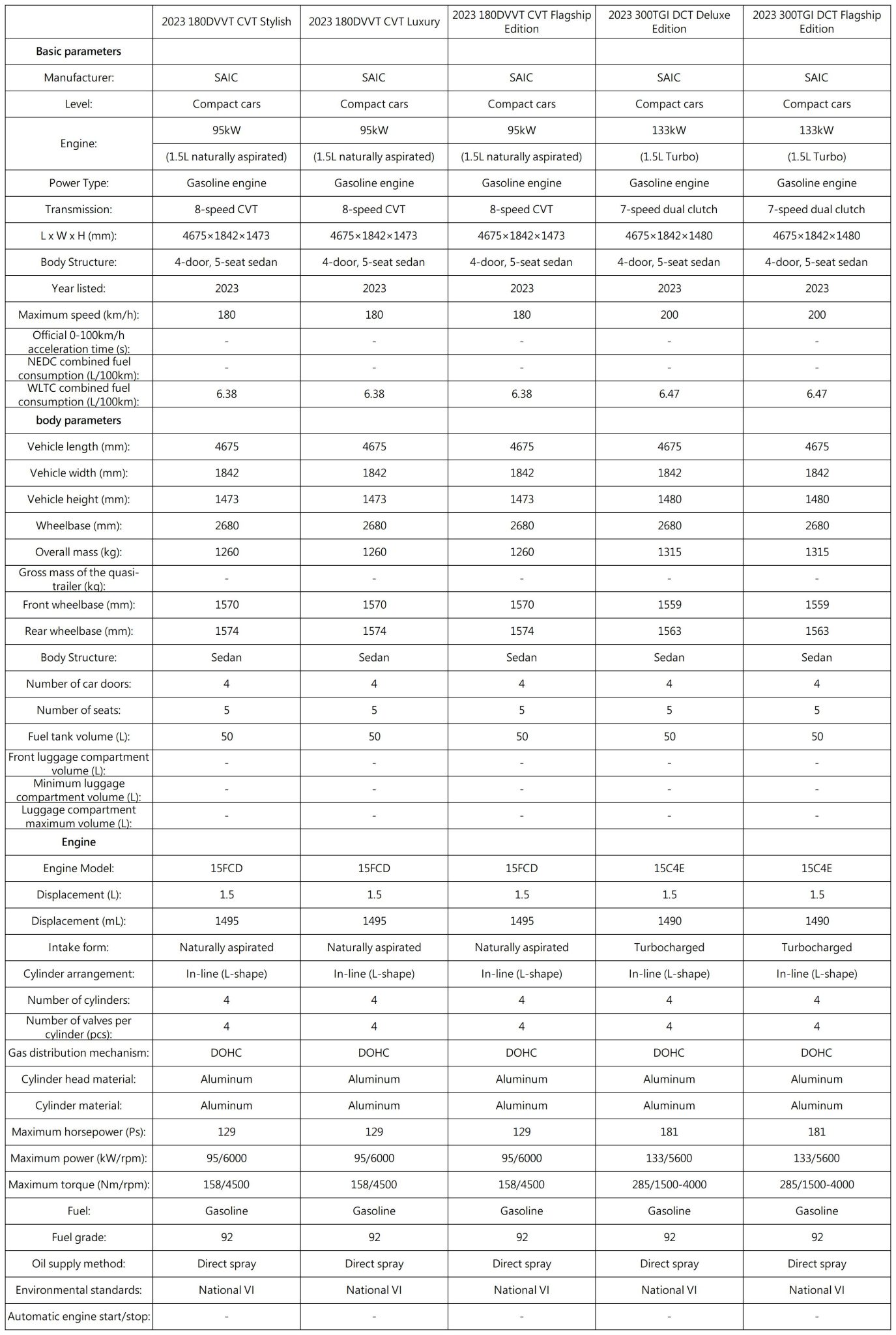 - A 1.5L turbocharged engine option delivering 127 kW (173 hp) and 275 Nm of torque for enhanced performance