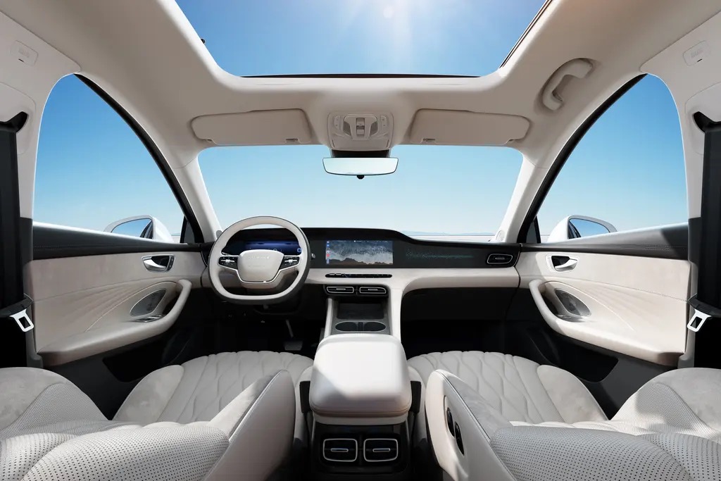 - A bold front grille with a streamlined design, giving it a futuristic and elegant look