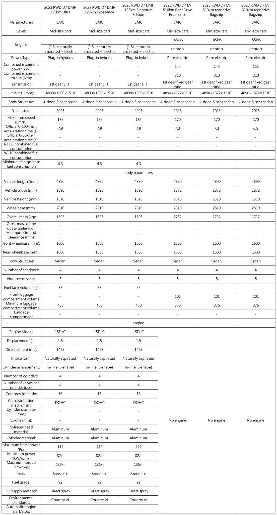 - A plug-in hybrid version (D7 DMH) combining an efficient gasoline engine with an electric motor for enhanced fuel economy