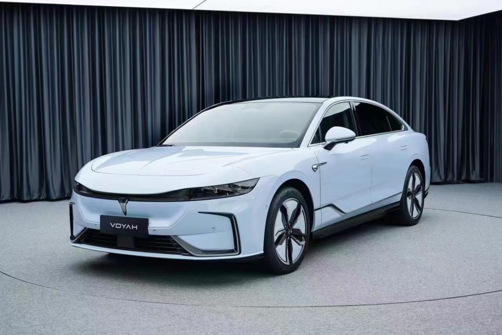 - A closed front grille with illuminated Voyah logo, reinforcing its electric identity