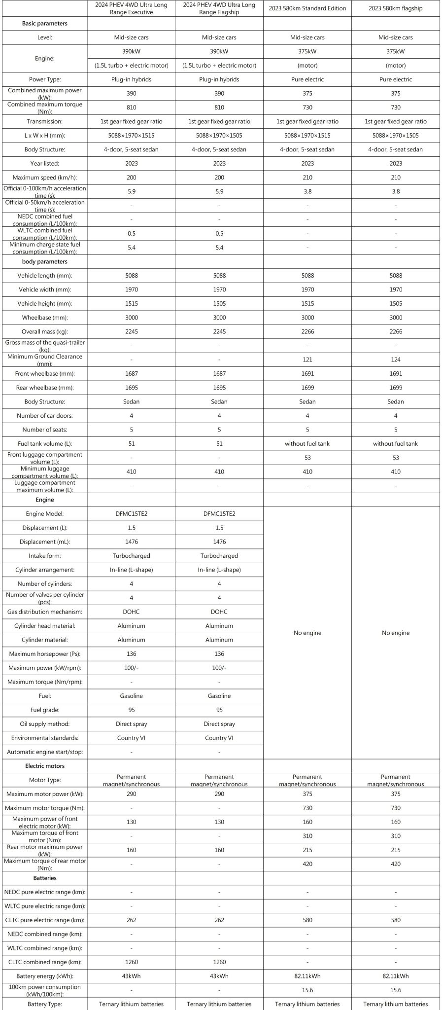 - A 109 kWh battery pack, offering a maximum range of up to 730 km (CLTC)