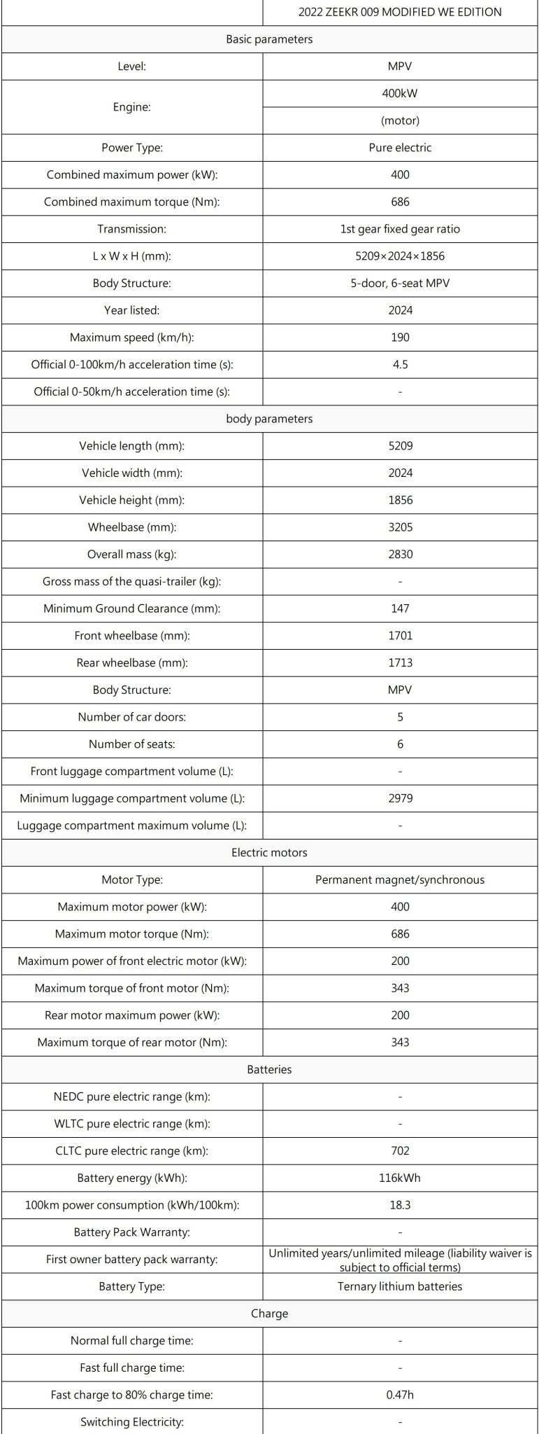 - A large battery capacity, ranging from 100 kWh to 120 kWh, enabling a maximum range of up to 700 km (CLTC) on a single charge